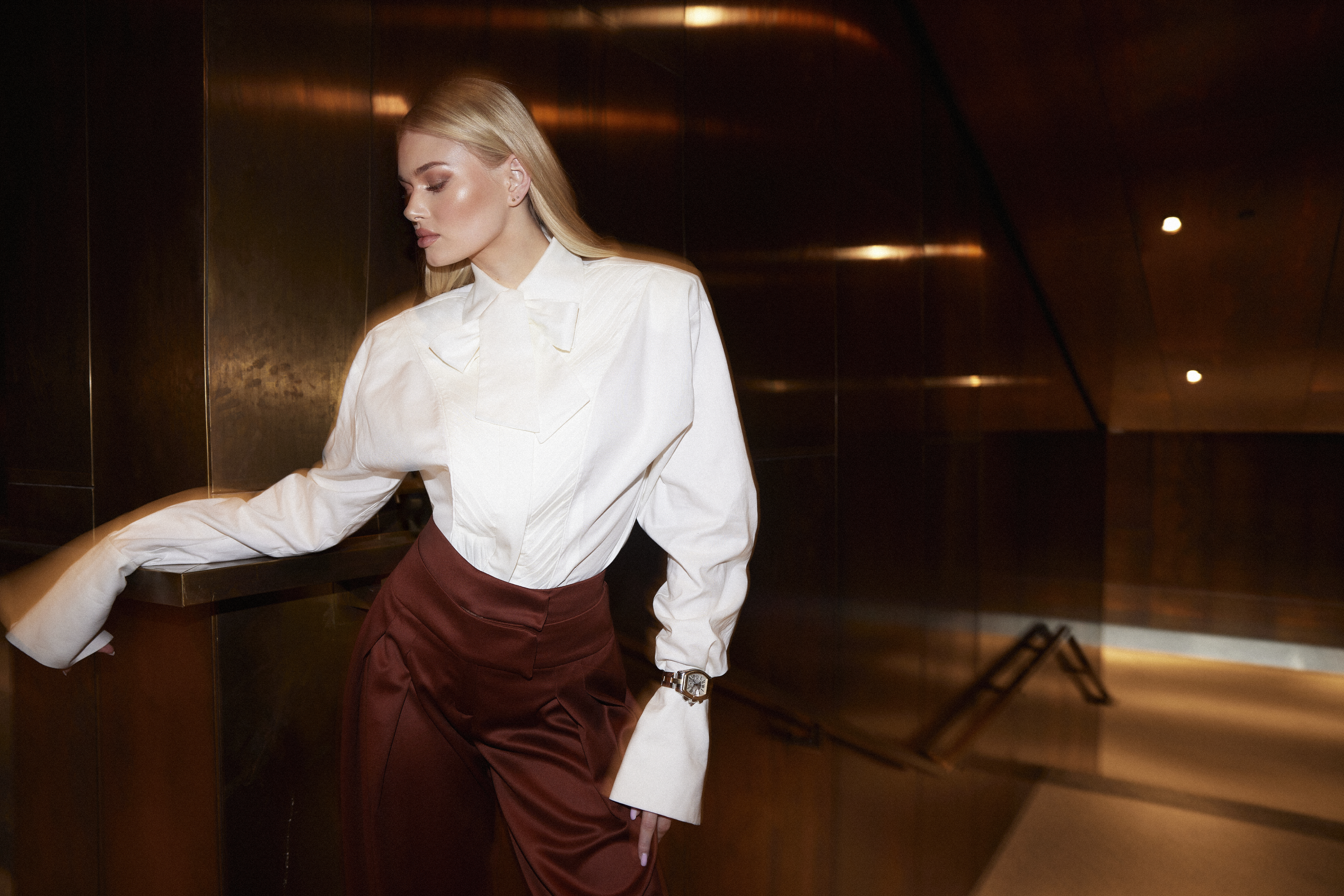 Jesienne sukienki mają płynne linie, delikatne drapowania i subtelne rozcięcia, dzięki czemu z łatwością przechodzą od codziennych sytuacji do wieczorowych wyjść. Do łask wracają też garniturowe komplety o miękkiej, kobiecej formie. To propozycje, które podkreślają siłę i niezależność, ale jednocześnie zachowują lekkość - idealne dla kobiet, które chcą wyglądać profesjonalnie, ale nie rezygnują z wygody. Jesienne okrycia również nabierają charakteru. Wełniane płaszcze o pudełkowym kroju, peleryny czy futrzane kołnierze dodają stylizacjom szyku, jednocześnie ocieplając chłodne dni. W wieczornych odsłonach pojawia się odrobina blasku. Metaliczne nici, lśniące tkaniny i subtelne połyski pozwalają wyróżnić się z tłumu, pozostając w eleganckim tonie. To estetyka, z którą marka Viola Piekut radzi sobie wyjątkowo dobrze - tworząc projekty, które przyciągają spojrzenia, ale nie dominują sylwetki.